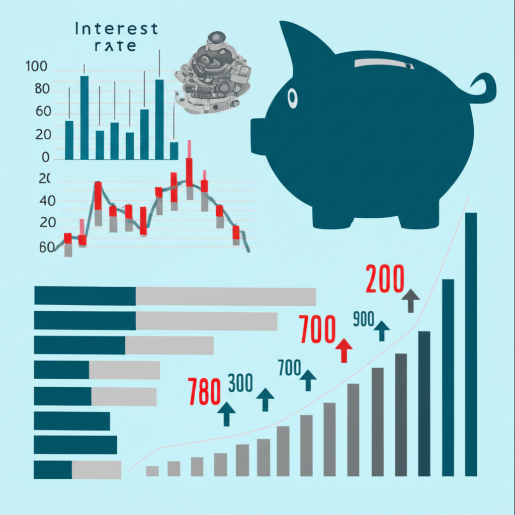 ภาพประกอบเศรษฐกิจไทยพร้อมกราฟแสดงการเปลี่ยนแปลงอัตราดอกเบี้ยและกระปุกออมสินที่ปลอดภัย